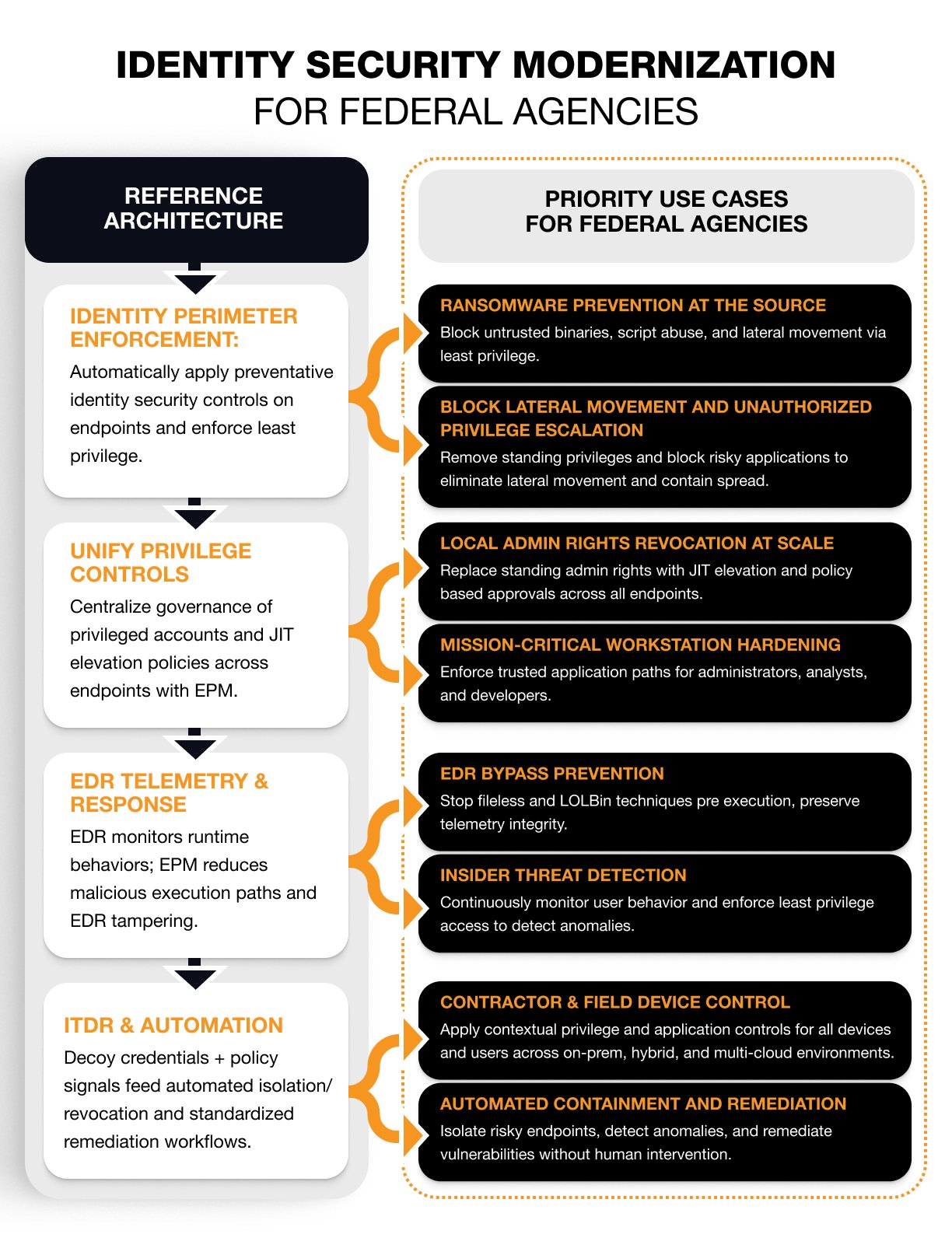 Federal agencies are experiencing an unprecedented rise in identity-driven cyberattacks. As adversaries increasingly target endpoints, compromise local privileges, and other identity-related vulnerabilities, reactive EDR tools are no longer enough to protect mission-critical systems. Zero Trust principles require agencies to “never trust, always verify” and that begins with securing identities at the endpoint.